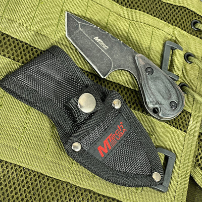 Mtech USA Black Ash / Gray Stonewash Miniature Full Tang Fixed Blade Knife w Snap Lock Sheath 2.5"