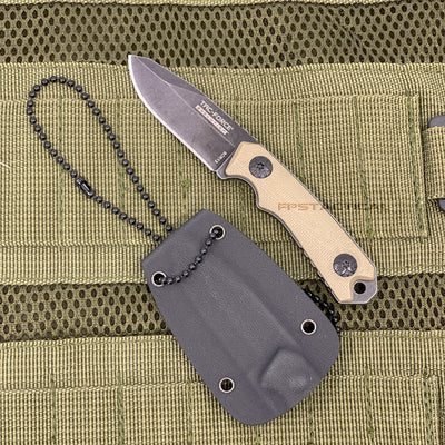 Tac-Force Evolution TFE-FIX009-TN Black / Gray Stonewash Miniature Full Tang Fixed Blade Knife w Necklace Sheath & Tan G10 Handle 2"