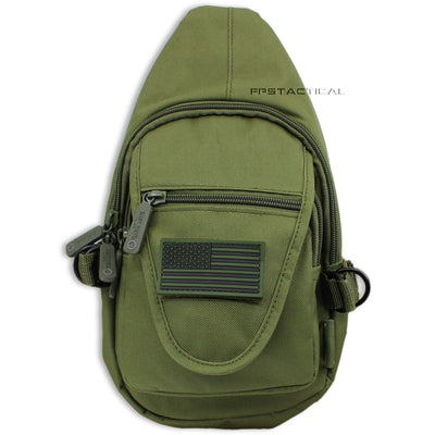 East West USA Olive Drab Green Tactical Military Sling Backpack w Removable USA Flag Patch