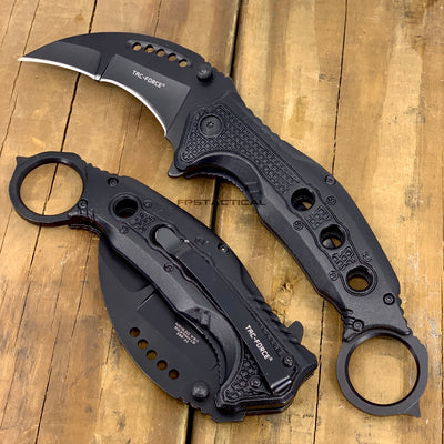 Tac-Force OD Matte Black Karambit Spring Assisted Tactical Knife w Glass Breaker 3"