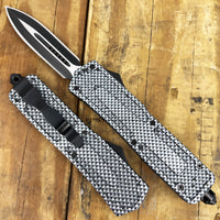 FPSTACTICAL Anthracite OTF Knife Black Silver w Carbon Fiber Handle 3.5"
