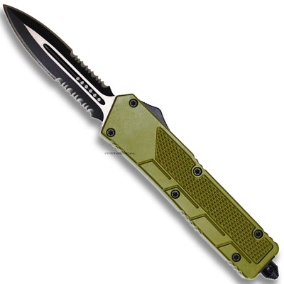 FPSTACTICAL Viridian Olive (Drab) Green and Black Dual Edge Serrated OTF Knife 3.5"