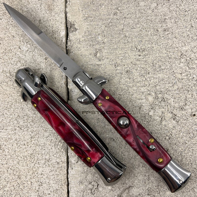FPSTACTICAL Carmine Italian Style Stiletto Switchblade Chrome and Maroon Marble 4"