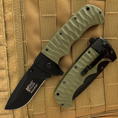 Mtech USA Heavy Duty Xtreme Ballistic Model 440 Stainless Steel Spring Assisted Tactical Bowie Knife with G10 ODG ( Olive Drab Green ) Scales and Matte Black Blade