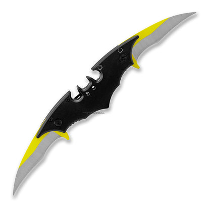 This Dual Blade Bat Wing Black / Silver / Yellow Spring Assisted Knife by Pacific Solutions is equipped with Dual 3" single-edged Karambit Style 440C Stainless Steel blades which provides the longevity, durability, and corrosion resistance found in some of the most expensive cutlery! It also features a durable Stainless Steel Frame with Black Aluminum Scales which provides a secure, lightweight grip that makes a lasting impression with its aggressive look. Add to all this, a handy / removable pocket clip and you have a knife that is that can not only be used as an EDC (everyday carry) while making an expression of your love for the Bat.