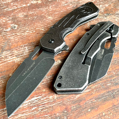 Tac-Force Black / Grey Skull Stonewashed Spring Assisted EDC Sheepsfoot Knife 3.5"