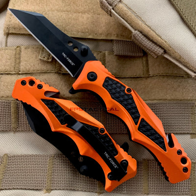 Tac-Force EMS / EMT Spring Assisted Rescue Knife Black / Orange w Aluminum Scales and G10 Inlay 3.5"
