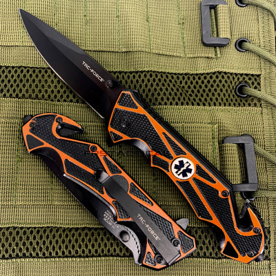 Tac-Force EMS / EMT Spring Assisted Textured Rescue Knife Orange & Black 3.5"