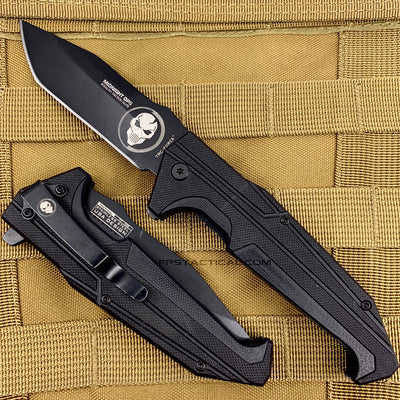 Tac-Force Midnight Ops Black Spring Assisted Skull Knife with G10 Scales / Black 3.75"