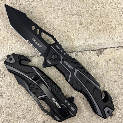 Tac-Force Black and Gray Spring Assisted Tactical Rescue Knife w Integrated Seat Belt Cutter 3.75"