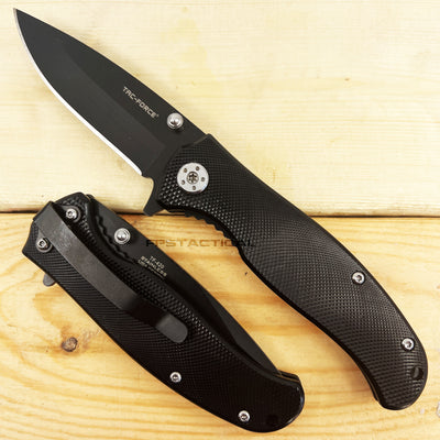 Tac-Force Classic Black 440 Stainless Steel Compact Spring Assisted Pocket Knife with Aluminum G10 Style Scales